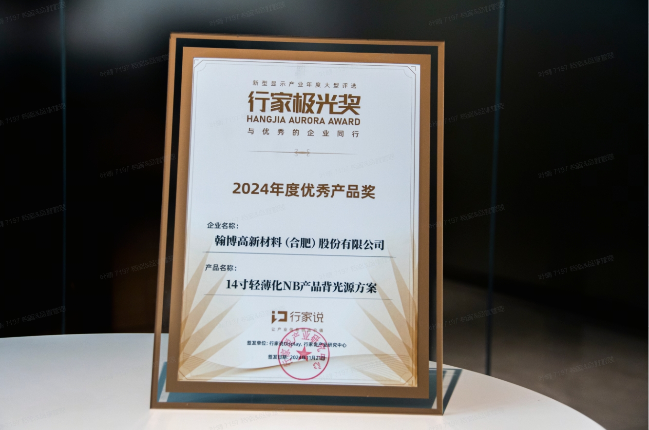 翰博高新材料(合肥)股份有限公司(股票代碼:301321.SZ)成立于2009年,是國(guó)內(nèi)領(lǐng)先集顯示設(shè)計(jì)、光學(xué)開(kāi)發(fā)、智能制造、供應(yīng)鏈整合于一身的光學(xué)整體解決方案一站式綜合提供商,公司的主要產(chǎn)品包含背光顯示模組、導(dǎo)光板、精密結(jié)構(gòu)件、光學(xué)材料、Mini-LED燈板等相關(guān)零部件,廣泛應(yīng)用于筆記本電腦、平板電腦、車(chē)載顯示屏幕、桌面顯示器、醫(yī)療顯示器及工控顯示器等終端產(chǎn)品。